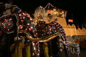 What Lawrence saw in Kandy in 1922 is what more and more people see growing in splendour year after year during Esala. Esala is the name of the flower known to botanists as Cassia Fistula, which blooms in full at this time of the year. Hence the name Esala Perahera, which blooms upon the hill capital of Kandy well known for its grandeur and serenity that inspired Georges Clemenceau, a former Prime Minister of France, to say, "Kandy, yes, but it is a place to die in. It is so extremely beautiful that you should go there when after the struggle is over, and live in its beauty until you glide away." The Perahera crystalises the beauty of the Kandy experience. It dates back to the 4th century AD, when the Tooth Relic of the Buddha was brought to the island in the reign of Kirti Sri Meghavanna. He decreed that an annual perahera be held in honour of the Sacred Relic. The Sacred Tooth leaves its sanctuary once a year and is carried in procession through the streets of the capital city of Anuradhapura. It is this tradition followed by every king after him through the centuries that is celebrated to this day, making this time of the year a time when all roads lead to Kandy, which is transformed into a fullness, an abundance, a whole blossom. The experience of the spectacular Kandy perahera, awesome and immemorial, blends sheer ecstasy with an indescribable sense of inner peace. All this because the spectator has seen a ceremony in honour of the Sacred Tooth, a peerless object of veneration like no other anywhere in the world. It is said that Sri Lanka was chosen as the new home for the Tooth Relic because Lord Buddha had declared that his religion would be safe in Sri Lanka for 2,500 years. Woven into the fabric of the Esala Perahera are many time honoured rituals and customs. They hold meaning and significance to the people of Sri Lanka –"that they may honour their gods and procure their aid and assistance" as Robert Knox observed in his An Historical Relation of Ceylon. In fact, the Kandy Perahera is an amalgam of five distinct peraheras. The Maligawa Perahera comprises whip crackers, who lead the way heralding the approach of the perahera, flag bearers who carry the standards of the different provinces and temples, the Peramunarala, who rides the first elephant carrying an ola manuscript called the Lekam Mitiya (a register of the Maligawa lands), the drummers playing Hewisi (martial music) on a variety of drums such as the Daula, Tammettama, Udakkiya and Bere, and playing Horanewas (flutes), the Gajanayaka Nilame (traditionally the Head of the Royal Elephant Stables) gripping a silver henduwa (ankus, elephant goad), followed by the Kariyakorale (master of ceremonies, second in the hierarchy of temple officials), attended by minor temple functionaries, drummers and dancers. Next treading majestically and solemnly is the Maligawa Tusker, carrying a duplicate of the Perahera Karanduwa (golden casket) containing the sacred relic, followed by two lines of dancers facing each other with drummers in the middle, and finally the Diyawadana Nilame (Custodian of the Tooth) in oriental splendour attended by lance bearers, sunshade bearers and parasol bearers as well as temple headmen. Following this main procession are four smaller ones, associated with the devales (shrines) honouring the respective deities. The Natha Devale is in honour of the Buddha-to-come, the Maha Vishnu Devale in honour of the deity that protects Buddhism in Sri Lanka, the Kataragama Devale in honour of the god who is all-powerful in war and Pattini Devale in honour of the goddess of purity, chastity and health. Esala is an unparalleled season, not of one perahera but of many, in fact, a whole cycle of peraheras in different parts of the country. It is a time of fulfillment, of renewal. Courtesy: The Sunday Times of Sunday August 08, 2010