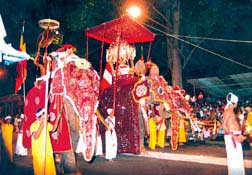 The colourful parade began Saturday night from the sacred Buddhist shrine of Dalada Maligawa, showcasing the temple custodians known as Nilames, who were dressed up like ancient kings. The festivities also included traditional Kandyan dancers, fire-juggling acrobats, palanquins, musicians and torchbearers, who followed the elephants through the streets. Kandy Perahera is celebrated annually ever since the sacred tooth relic of Buddha was brought to Sri Lanka during the reign of King Kirthi Sri Meghavanna during 300 A.D. Similar festivals take place in other parts of the country, including capital Colombo, but on a smaller scale. The grand finale of the 10-day celebrations in Kandy, known as Randoli Perahera, began at an auspicious time at 8 p.m. Saturday. Thousands of Sri Lankans and hundreds of foreigners, including the Colombo-based diplomatic corps, attended the night of pageantry. According to organisers, over 3,000 police personnel and hundreds of military personnel, were on guard to ensure that the event remained trouble-free. Dalada Maligawa was also hit by the decades-long ethnic war when a suicide cadre of the Tamil Tiger rebels blew up an explosive-laden truck right in front of the temple, causing damage to the shrine in April 1998. But the temple faced the first attack during the insurrection of the radical Marxist Janatha Vimukthi Peramuna (JVP) in the 1980’s. The highlight of Saturday’s parade was the brightly festooned Maligawa Tusker called Raja, the biggest elephant in the procession, proudly carrying the Perahera Karanduwa, the replica of the casket in which the sacred tooth relic of Lord Buddha is kept. The actual relic is kept inside seven caskets in the inner sanctum of the Dalada Maligawa. On the directions of the mahouts, Raja and other elephants walked in measured steps and seemed as though they were moving to the beats of the traditional drummers. In Sri Lanka, the lives of elephants are interwoven with those of humans. They are a part of the history, culture, religion and tradition of the island nation, which has 20 million people and nearly 4,000 elephants. The procession was flanked by torch-bearers, who steadfastly carried long, flaming wooden poles. Although the country has been suffering from one of the bloodiest ethnic conflicts, this colourful pageant in Kandy symbolises the religious harmony and ethnic unity among the two main communities - the Sinhala-Buddhist and the Tamil Hindus. Anuradha Seneviratne, a professor of the Peradeniya University, said that apart from its religious significance, the event provides a platform to traditional folk artistes to exhibit their reverence and devotion to the enlightened one - the Buddha - and to gods and goddesses such as Natha, Vishnu, Kataragama (lord Muruga) and Pattini. In one of his books on the Kandy Perahera, Seneviratne writes says that the characteristic of the annual Kandy pageant has gone through a transformation over the years. ‘The Perahera of yesteryears reflected the spirit, the socio-cultural milieu and the political and administrative structure of the times (feudal and monarch elements). (But) The Peraheras today, though portraying semblance of its past grandeur, has transformed into a mere folk pageant,’ he writes. Courtesy: Barefoot SriLanka