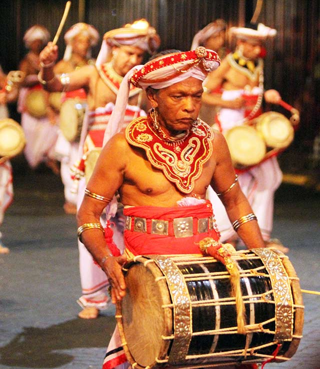 Kandy Esala Peraheraby Sujan JayasingheThere are many number of perahara festivals in Sri Lanka. Almost all perahera festivals are based on the religion, especially Buddhism. The Esala Perahera in Kandy is one of the oldest and grandest of all Buddhist pageants in Sri Lanka. Even though it is a Buddhist event, other religions devotees also take part here. The Esala Perahera in Kandy parades along the streets to honor the sacred Tooth Relic and the four ‘guardian’ gods: Natha, Vishnu, Kataragama and Goddess Pattini. The Kandy Esala Perahera is held annually in July and August on days fixed by the Diyawadana Nilame of the Dalada Maligawa (Temple of the Sacred Tooth Relic). The Sacred Tooth Relic was brought to Ceylon in the reign of King Kirthisiri Meghawanna who ruled at Anuradhapura from 303 – 331 AD. On the following new moon in July an Esala tree or at the present time, usually a Jak tree or Rukkattana tree is cut and ‘Kap’ planted in Natha, Maha Vishnu, Kataragama and Pattini dewalas vowing that the perahera will be held. For the next four days the ‘dewala perahera’ is conducted within the dewala premises. Following this first stage, the perahera goes in procession for ten days in succession over a prescribed route along the main streets of Kandy. On each of these days, the peraheras of dewalas proceed to the entrance to the Dalada Maligawa, where they join the Maligawa perahera and the combined procession goes winding along the prescribed route. The first six days of the perahera is called the Kumbal Perahera, and the second phase of the perahera, the Randoli Perahera, from the randoli or the gilded palanquins of the four dewalas, which are a feature of the processions the next five nights and the last night is the grandest of all. The main perahera procession consists of five separate peraheras which are Dalada Maligawa Perahera, Natha dewala perahera, Maha Vishnu dewala perahera, Katharagama dewala perahera and Pattini dewala perahera. All pereharas are comprised with religious and cultural items. Whip crackers lead the way and announce the approach of the perahera by cracking their whips. Whip crackers come into picture only at the commencement of the Randoli Perahera. They do not take part in the kumbal perahera. The flag bearers walk next in single file on either side of the road. After that Peramune rala rides on the first elephant.Next comes the drummers playing Hevisi or martial music on a variety of drums such as dawula, tammettam and bera and blowing horanawa. The Gajanayaka Nilame comes next. He rides on elephant and carries a silver goad (Ankusa) which is the symbol of his authority. After that Kariyakorale, who is, next to the Diyawadana Nilame. Now comes Maaligawe tusker to carry the perahera karanduwa (golden casket) containing the sacred relics. A canopy is held over the tusker, and pavada. Those who have the privilege of going up to the octagon and watching the formation of the perahera from there still get chance of seeing the Diyawadana Nilame comes into the courtyard of the temple accompanied by drummers and dancers walking on pavada and carrying aloft the golden casket. The Natha dewala perahera, maha Vishnu dewala perahera, Katharagama dewala perahera, pattini dewala perahera follows the Maligawa perahera respectively. The long procession ends with the Randolis borne by the tenants of the Dalada Maligawa. The Diyawadana Nilame may, if he desires, invites the Adikarams and Dissawes to walk with him in the Perahera. Furthermore, if for any reason he is unable to officiate in the procession, he may ask one of the Basnayake Nilames to take his place. Incidentally, the best time to see Esala Perahera is on the last two nights. This festival is a sacred festival to all of us. We have to give our respect as much as we can. As the Sri Lankans we should reserve a time to watch this colorful event lively. Pics by Chandana Wejesinghe Courtesy: The Nation of September 6th 2015